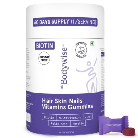 Be Bodywise Biotin Hair Gummies I Sugar Free I 60 Day Pack I Healthy Hair,Skin,Nails I \'6-in-1\' Biotin, Zinc, Folic Acid, Vitamin C, Keratin & Multivitamin I Gut FriendlyI Strawberry FlavorI100% Vegan