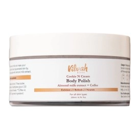 Vilvah Store Cookie N Cream Body Polish | Exfoliating Coffee Body Scrub | Moisturizing Shea Butter & Almond Milk Extract | Moisturizes & Brightens Skin | Sulphate Free | for Men & Women | 200gm