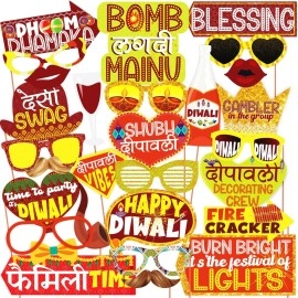 WOBBOX Diwali Decoration Happy Diwali Photo Booth Party Props, Yellow & Orange Colour, Diwali Decoration Item, Diwali Dcor Items (29 Pcs)..