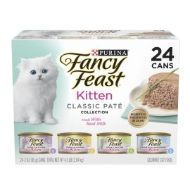 Fancy Feast Purina Grain Free Classic Pet Collection Food Variety Pack For Kitten - 4 Flavors - (24) Boxes