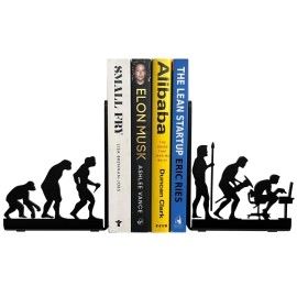HeavenlyKraft Human Evolution Decor Metal Bookends for Heavy Books, Library, Office