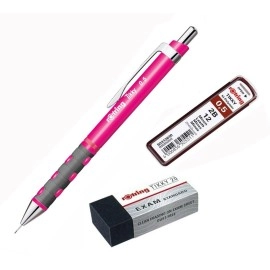 rOtring Tikky Mechanical Pencil, 0.5mm, Neon Pink Plus 2B Lead Box & Eraser