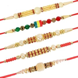 Sukkhi Rakhi Elegant Floral Kundan Designer Gold Plated Premium Rakhi for Brother With Roli Chawal & Greeting Card | Rakhi for Bhaiya | Rakhi for MEN | Kundan Rakhi | (RAK73480)