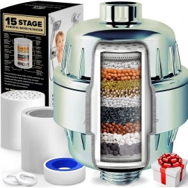 BWDM 15 Stage Shower Filter - Shower Head Filter - Hard Water Filter, Remove Chlorine Heavy Metals and Other Sediments, Vitamin C Water Softener Reduces Dry Itchy Skin, Dandruff (Chrome)