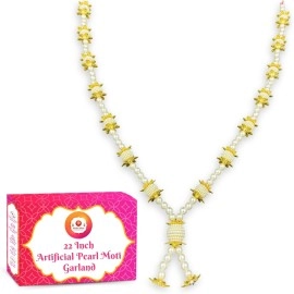 Bhakti Lehar 22 Inch Artificial Heavy White Golden Pearl Moti Garland Mala is made up of Fine Quality White Pearl Moti Material and Stone. The design of this mala is totally hand-made which is specially designed by our skilled craftsmen. This Photo Frame Garland Mala can be used for God Idols, Photo Frames, Murti, Bhagwan, Drama Costumes and Photo ..