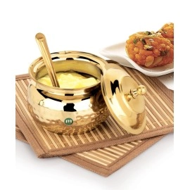 Add a touch of elegance to your kitchen and pooja space with the MARU Elegant 300ml Hammered Brass Ghee Pot. This beautifully crafted pot features a hammered brass design that not only enhances its aesthetic appeal but also adds texture and charm. With a 300ml capacity, its perfect for storing and serving ghee, oils, or other liquids, making it a v..