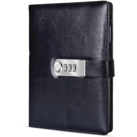 AccuPrints PU Leather 2024 Notebook Diary with Lock, Size 6 ny 8 inch or A5 with Combination Password Journal- Pages 200 undated (Grey)