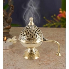 DSH Metal Home Purifying Incense Burner, Sambrani Dhoop, Bakhoor Burner, Loban Burner with Wooden Handle for Home Office Temple Puja.