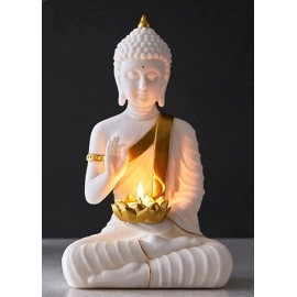 SN Handicrafts Buddha Idol Statue Showpiece Gift Gifting Item Polystone Home Decor Decoration 1 pic (White)