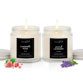Aromahpure Scented Candles (55 Hrs) |Pack of 2| 100% Soy Wax Handcrafted | Smoke-Free | Charming Rose-Bulgarian Rose, Joyful Lavender- Lavender Fragrance Candles for Home & Gift Sets..