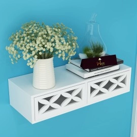 Heartily : Wall Mounted White Cast Acrylic Home Pooja Temple Mandir Puja Room Items Stand Home Decor Office Chowki Shelf Hanging Product (Height- 6.25, Length- 12 , Width-9.0 Inch) (White)