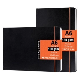 MENORAH - Sketchbooks for Artists-A6-180 GSM- (PACK of 2 Combo )Pocket Size Sketchbook-(100 Pages/50 Sheets)-Drawing Book for Artists-(Size Landscape SKetchbook 10.5 cm x 14.8 cm & Portrait Sketchbook