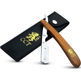 The Cambridge Cutthroat Razor Kit with Travel Pouch - Missanda Hardwood & Stainless Steel Professional Barber Single Straight Edge for Men - Moustache & Beard Shaper - No Blades Included.