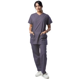 UNIFORM CRAFT Womens Scrub Suits DSVX || 4 pocket scrubs | Ideal for doctors, dentists, vets, nurses & healthcare professionals (Grey, L)