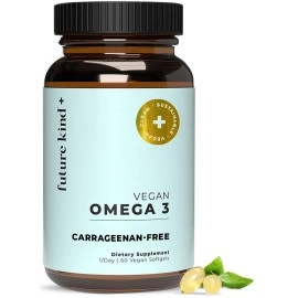 Future Kind Vegan Omega 3 Supplement (2 Month Supply) - Glass Bottle & Carrageenan-Free Algae Omega 3 Supplements for Joint, & Mood Support - DHA EPA Supplements for Kids & Adults