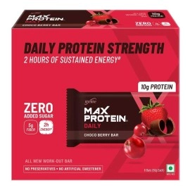 A BAR FOR EVERYONE: With 10gms of protein in each bar and 5gms of fiber, Max Protein Choco Classic protein bar is the perfect bar for your daily lifestyle with no preservatives and no artificial sweeteners. SUSTAINED ENERGY: Max Protein Choco Classic is your go to performance energy bar, purposefully crafted with an ideal mix of 3 protein blends of..
