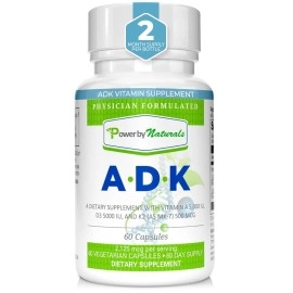 Power by Naturals Vitamin ADK is a Dietary Supplement with Vitamins A, D3 vitamin 5000 iu , and K2 (as MK-7). A D K is a dietary supplement that supports: Bone structure, density and integrity*, Proper bone remodeling*, Calcium utilization*Vitamin A is a fat-soluble vitamin with multiple functions in the body and eye health. It is required for norm..