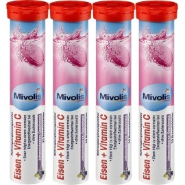 Mivolis Iron + Vitamin C effervescent Tablets - Dietary Supplements 4 Packs x 20 pcs | Germany