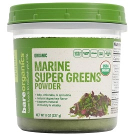 BareOrganics Marine Super Greens Powder | USDA Organic, Gluten-Free, Vegan, Non-GMO, BPA-Free | Kelp, Chlorella, Spirulina, 8oz..