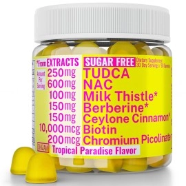 Sugarless Gummies with Chromium Picolinate TUDCA NAC Organic Ceylon Cinnamon Milk Thistle Berberine | Capsules Powder Supplements Alt | Bile Salts N-Acetyl-L-Cysteine Biotin N-Acetylcysteine 600-mg