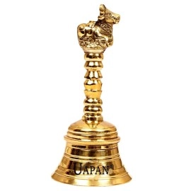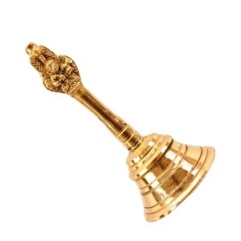 Craftvatika Brass Hand Bell for Pooja Ghanti for Mandir, Home and Office Temple Prayer Bell Ghanti for Decoration (1.6 x 3.8 inches, Golden)