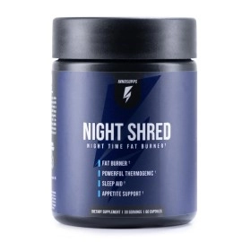 Inno Supps Night Shred: Night Time Fat Burner Maximize the quality and quality of your sleep while priming your body to accelerate the fat burning process with Night Shred. Taking 2 capsules before bed will invoke a sense of relaxation and improve the onset of REM sleep faster, allowing you to wake up refreshed and energized. Night Shred supports h..