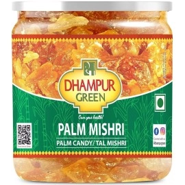 Dhampur Green Tal Mishri Palm candy from west coast of India is a nutrient-rich, low-glycemic index crystalline sweetener that looks, tastes, dissolves, and melts almost exactly like sugar, but it\'s completely natural and unrefined. Palm tree sap is crystallized and sun-dried without refining or adding any additives. Palm candy is golden brown in ..