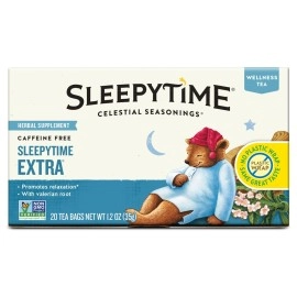 Relax and fall asleep easier with Celestial Seasonings Sleepytime Extra Herb Tea. This herbal tea contains a unique blend of chamomile, mint and other soothing herbs, with added valerian that naturally promotes sleep Caffeine free coffee, perfect for overnight sleep. Includes 6 bags of 20 bags, each is enough for 1 cup of tea. Tea flakes are easy t..