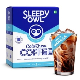 Sleepy Owl Coffee French Vanilla Cold Brew Packs | Set of 5 Packs - Makes 15 Cups |3 Step Brew - No Equipment Required | 100% Arabica Beans - Sourced Directly from Farms..