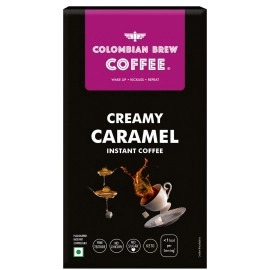 COLOMBIAN BREW COFFEE Creamy Caramel Instant Powder, No Sugar Vegan, 50gm