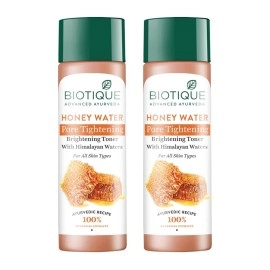 Biotique Honey Water Pore Tightening Brightening Toner with Himalayan Waters |Maintains pH Balance| Moisturized and Hydrated Skin | |100% Botanical Extracts| All Skin Types | 120ml (Pack Of 2)