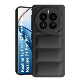 CEDO Realme 12 Pro / 12 Pro+ Plus/Realme P1 (5G) Back Cover | Camera Bump & 360 Flexible Puff Armor Protection | Matte Soft Silicon Shock Proof Rubberised Back Case Cover (Black)