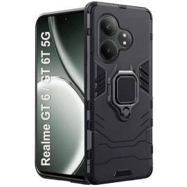 TheGiftKart Tough Armor Bumper Back Case Cover for Realme GT 6 / GT 6T 5G | Ring Holder & Kickstand in-Built | 360 Degree Protection Back Case Cover for Realme GT 6 / GT 6T 5G (PC & TPU, Black)