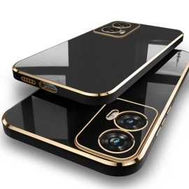TheGiftKart Luxurious Golden-Plated Back Cover Case for Motorola Moto Edge 50 Fusion 5G | Raised Lips for Camera & Screen Protection | Stylish Back Cover for Moto Edge 50 Fusion (TPU, Black)