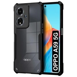 Fashionury Ultra-Hybrid Crystal Clear Back Cover Case for Oppo A59 5G | Total Camera Protection | Shockproof Design | Transparent Back (PC & TPU) Oppo A59 5G (Black Bumper)