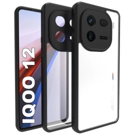 RIGGEAR Shockproof Sleek Hybrid Armor Back Cover Case Compatible with iQOO 12 5G (Transparent PC + Black TPU Bumper)
