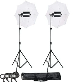 Pair Porta Kit continuous light system with two 1000W tubes Direct Umbrella mounting and tubes can be mounted directly onto light stand Useful for Indoor/Outdoor, Still/Video Photography; suitable for outdoor night photography also Compatible with all cameras, DSLRs. To be used independently with Camera (no interlink with camera) Durable and Sturdy..
