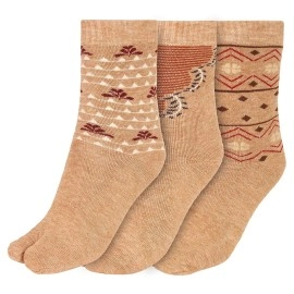 CREATURE Warm Woolen Calf Length Thumb Socks For Women Winter Wear (Light brown, Large)- Set of 3 Pairs