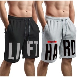 hotfits Men\'s Grey & Green Cotton Gym Shorts Pack of 2 - Leaf -Charger, Multicolour, M