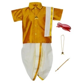 AMIRTHA FASHION Boys Traditional Dhoti & Shirts SET WITH ACCESSORIES (Pyjamas Dhoti GOLD), Gold, 6-12 M
