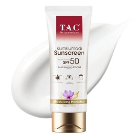 TAC - The Ayurveda Co. Kumkumadi Sunscreen Moisturizing SPF 50 | UVA/UVB PA | Moisturizing Protection | All Skin Type | 50 g...