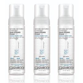 GIOVANNI Mousse Air-Turbo Charged Hair Styling Foam, 7 oz. Each - Lightweight for Natural Curls, Medium to Firm Hold, Wash & Go, No Parabens, Color Safe (Pack of 3)