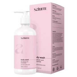 Saturn 2% Salicylic Acid Body Wash is enriched with Niacinamide, Glycerin & Cucumber Extract suits All Skin Types, exfoliates dead skin celles and gives a luxurious bath experience...