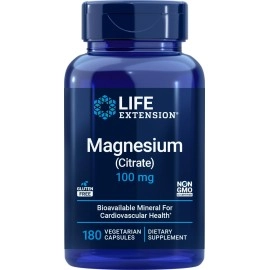 Life Extension Magnesium Citrate 100mg, 180 Vegetarian Capsules Magnesium is an important mineral for your health, since its required for more than 300 biochemical reactions. But many Americans don\'t get enough magnesium in their diets. Life Extension\'s Magnesium (Citrate) supplement provides 100 mg in each vegetarian capsule. Well-Absorbed Magn..