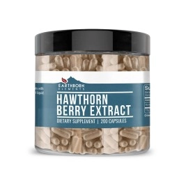 Earthborn Elements Hawthorn Berry Extract, 200 Caps, 1275 mg Serving, Fast Dissolving, Potency & Purity, Non-GMO, No Stearate or Rice Filler, Made in USA, Gluten-Free, Lab-d