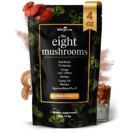 KIKI Green Mushroom Powder Extract - The 8 Mushrooms Supplement Blend for Coffee & Smoothie | Lion\'s Mane, Cordyceps, Chaga, Reishi, Shiitake, Turkey Tail, Maitake Complex