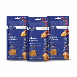 BARK OUT LOUD By Vivaldis Adult Dry Dog Food For All Breeds Salmon And Turkey Formula, Pet Nutrition, Rich In Novel Protein And Prebiotics, Fresh Salmon, Super Herbs Low Grain, 300 Gm (100 Gm X 3)