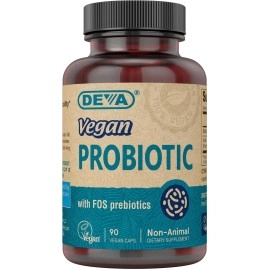 Deva Vegan Probiotic with FOS Prebiotics Supplement - 2 Billion CFU with 100 MG of Prebiotics Per Serving for Men & Women - Non-Dairy Gluten Free - Naturally Shelf Stable - 90 Capsules..