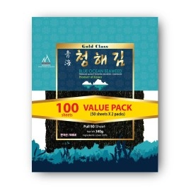 DOKDO SUPPLY Blue Ocean Sushi Nori Seaweed Sheets Full Sheets 100 sheets (50x2) 280Gram Organic Yaki Roasted Rolls Wraps 100% Natural Laver Fresh Maki Premium Thick Quality (100)