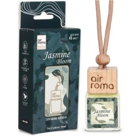 AIR ROMA Jasmine Bloom Car Perfume Hanging Pod 10ml | Natural Essential Premium Fragrance Oils in Glass Bottle with Wooden Diffuser Lid | Long Lasting Car Air Freshener Scent | Lasts Up to 45 Days